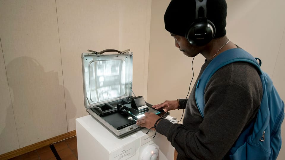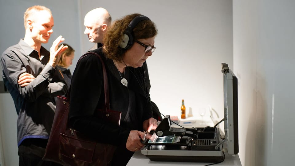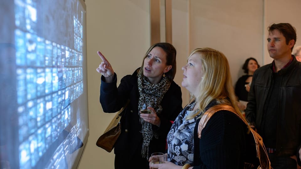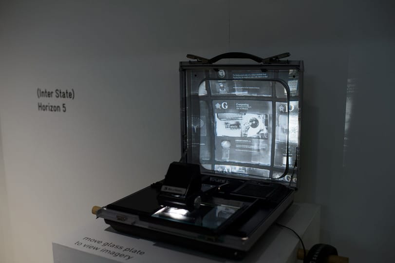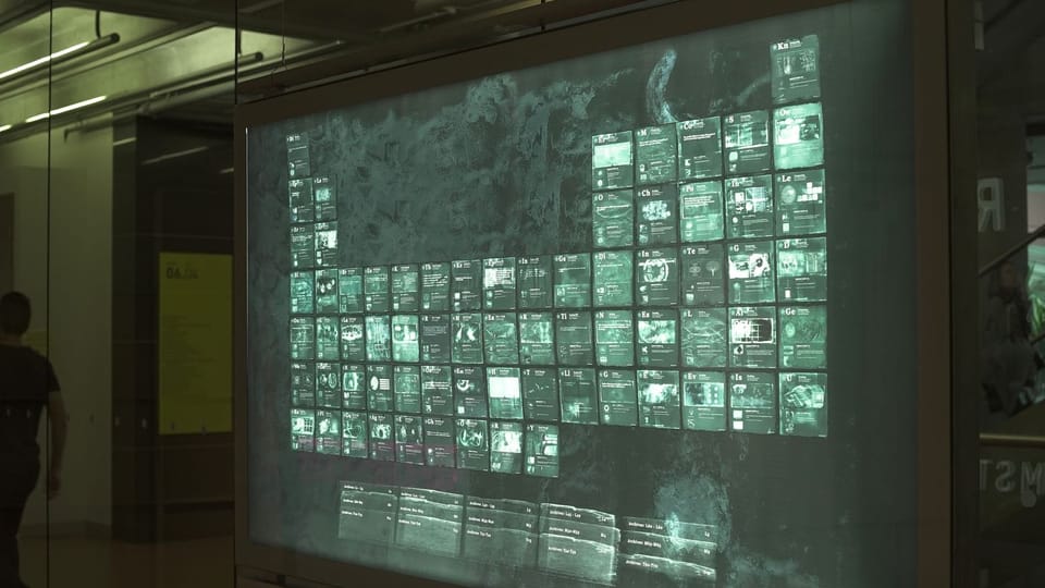 This artwork integrates concepts of art, science and design ‘re-futuring’ practices through two related works: a large-scale backlit print depicting a re-imagined scientific periodic table of elements, mounted in a hanging light box, and a scientifically-arcane microfiche viewer and headphone soundscape. Viewers can examine the imagery as a whole, or in forensic close up, by instigating slow scans across groups of ‘elements’ on the microfiche reader.
