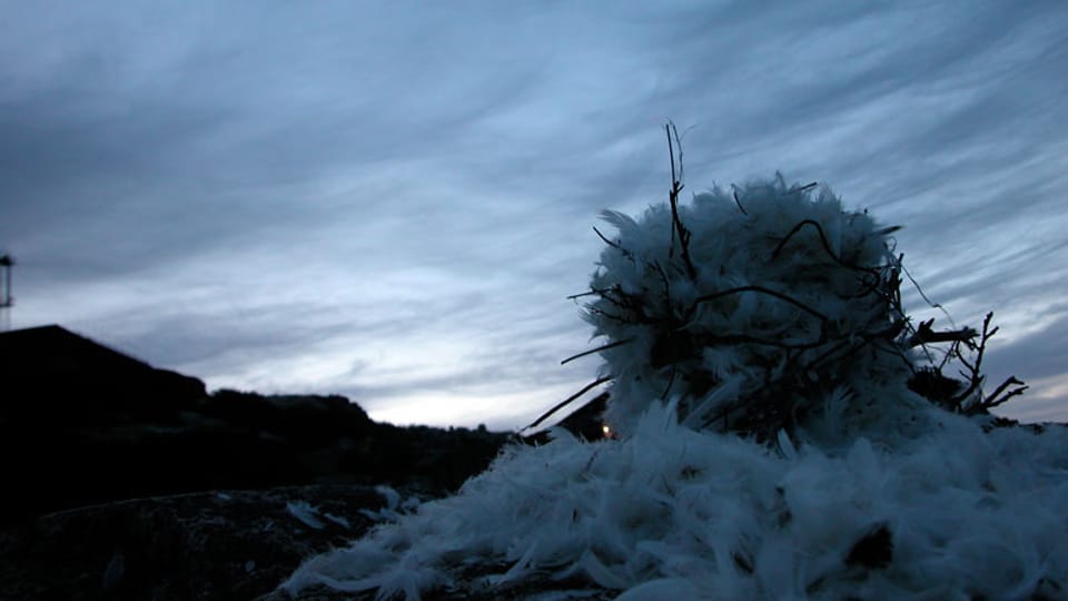 Performance 2: The summit of Mt Tai, Shandong Province. Building a mountain from Goose Feathers.