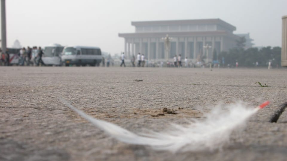 Performance 1: Tiananmen Square, Beijing: Dropping 100 goose feathers.