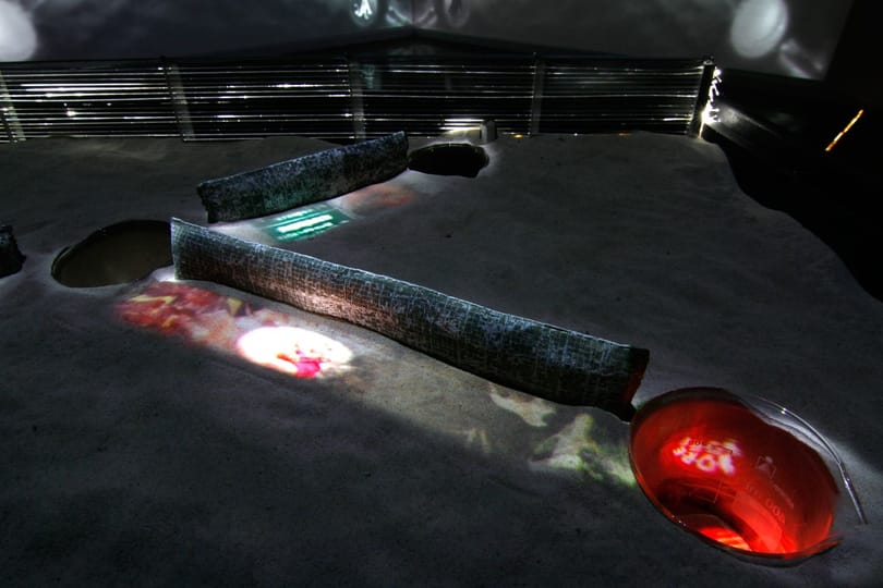 ‘Pitfall’ is a continually-evolving artwork built from multiple screens, a tabletop landscape mapped with projections, fibre optics, 3D spatial sound and infrared night imagery. It builds upon ideas, recordings and cross-disciplinary processes developed during my 2012-13 ANAT Synapse Art-Science residency, with the Australian Wildlife Conservancy (AWC), Australia’s largest private-sector conservation organisation. See the Reintroduction project pages.