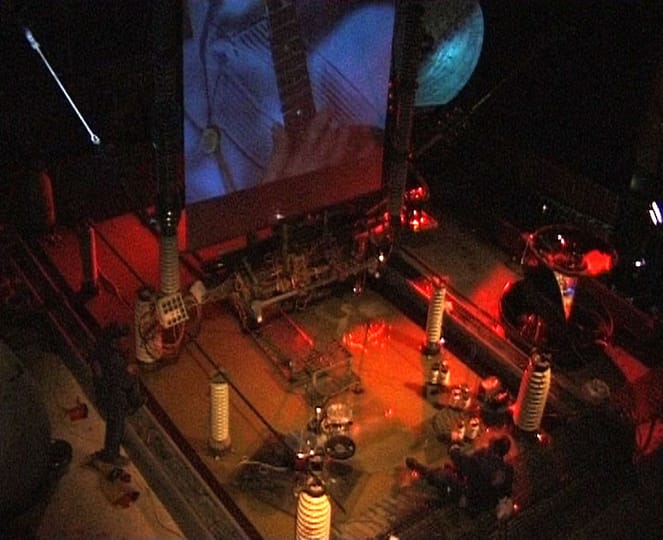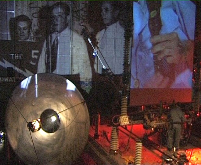 A collaboration between The Arterial Group and San Francisco based performance artist Barry Schwartz at Brisbane Powerhouse Centre for Live Arts. Elektrosonic Interference combined large scale cinematic video projection, mechanical sound sculpture, high voltage electricity and live voices to produce a performance-installation, developed from stories of former powerhouse workers and the history of the site during its industrial era. The performance was produced by a core multidisciplinary creative team together with students and community participants. I was the Visual Director in The Arterial Group Creative Team in this wite-specific performance/electro-acoustic installation/interdisciplinary public art work.