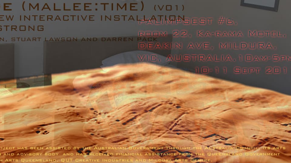 V1: Mildura Palimpsest #8, 9-11th September, 2011, Room 22, Ka-rama Motel, Deakin Avenue, Mildura, VIC, Australia. Curated by Kristian Haggblom and Helen Vivian.