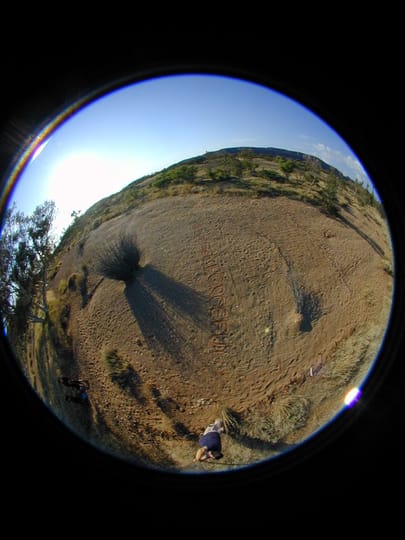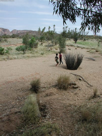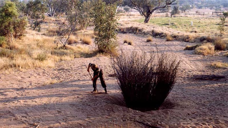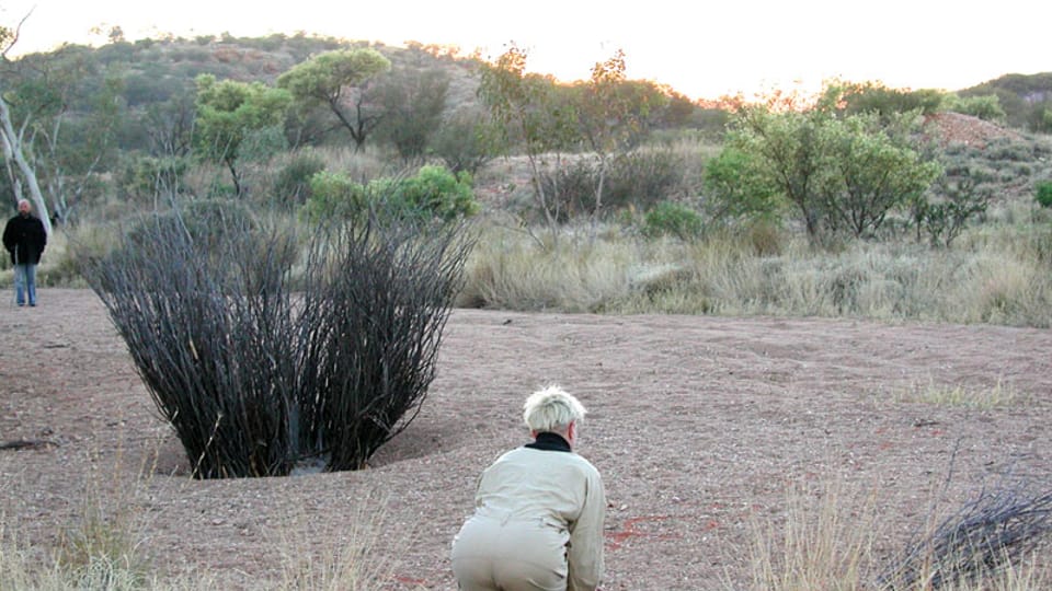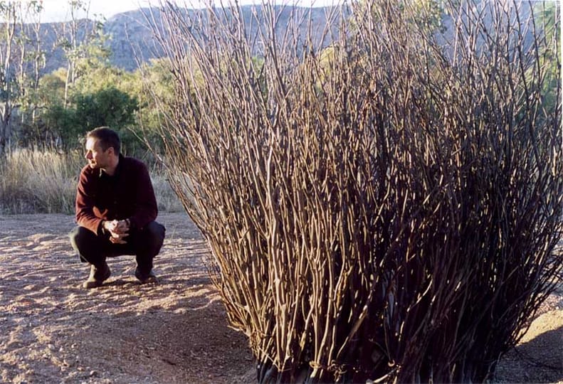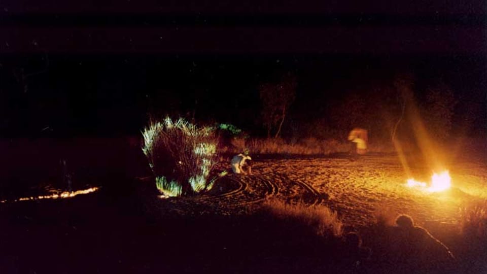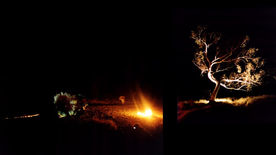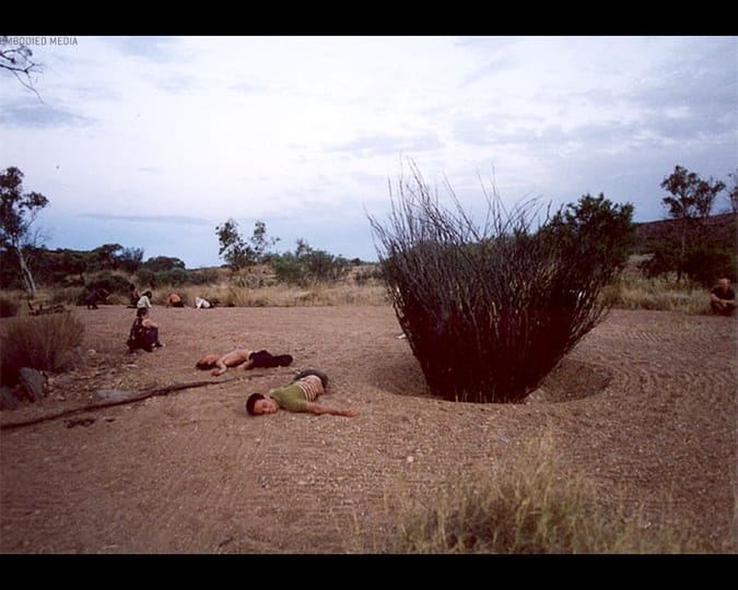 A site specific installation and performance work created during 'Triple Alice', an interdisciplinary project conducted at Hamilton Downs Station, near Alice Springs, Northern Territory, Australia, organised by performer Tess de Quincey. The work resulted in a major site-specific environmental, installation work in a river bed, and series of Bodyweather performance works. These were collectively called 'Golden Circle'.