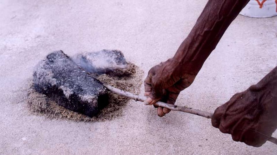Golden Circle: 2001, Preparing the Site: Raking The Dry Riverbed (Photo Keith Armstrong)