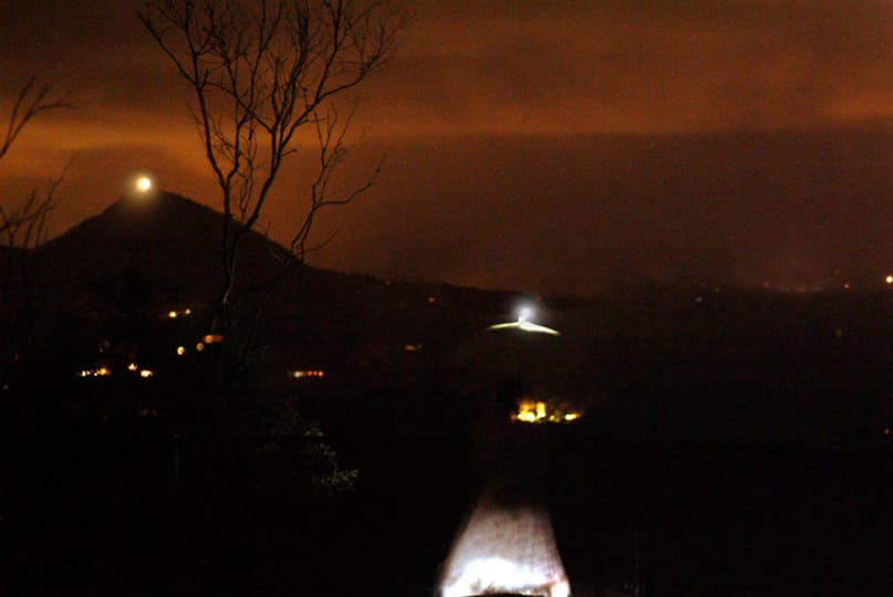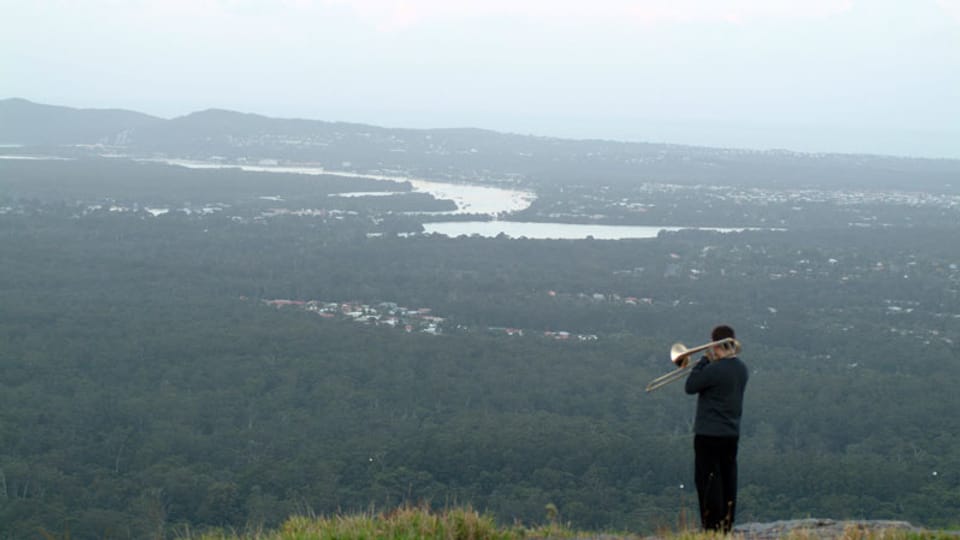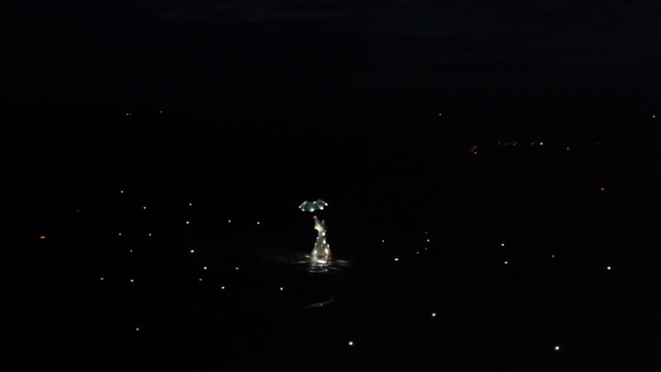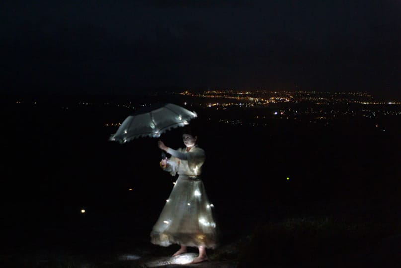A promenade performance/installation event staged along the journey to a mountain summit with a performer emanating light and sound. The work continued on the summit with a video installation in the lookout tower and a live trombonist surrounded by hundreds of white lights quivering in the wind - accompanied by stunning 360 views of the shire’s lights, floating over the ground, far below. Involved site specific performance & installation with light, sound & projections.