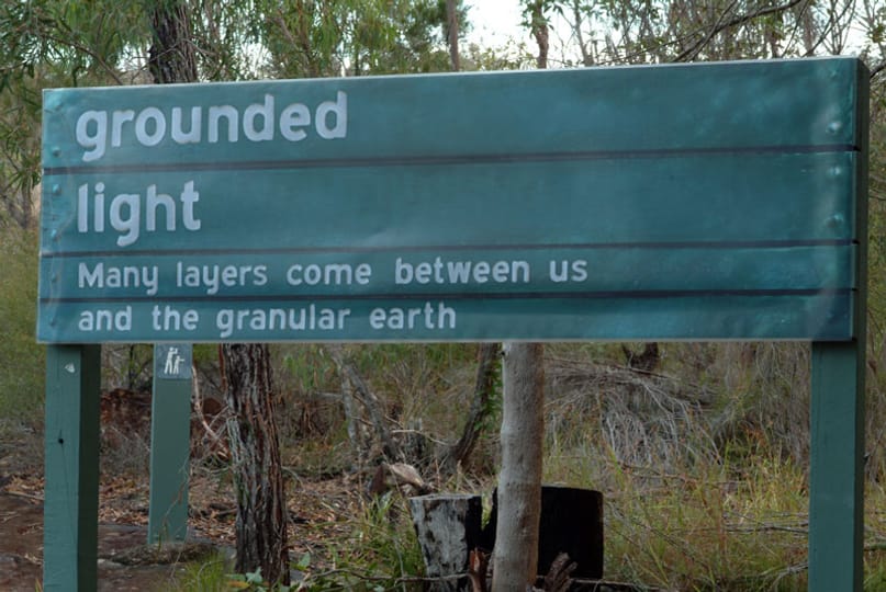 MORE: From the mountain, one can observe the general shape of the land, the flocking of life to the coast, the deep scars of forest clearing, and, as the sun sets, the pinpoint lights of human dwellings. Much of the story of western settlement can be read from the marks in the land. This settlement has occurred, however, not so much IN the land, but OVER the land. We have thrown our civilisation like a picnic blanket over this country, often with little regard for its rocks, sticks & dirt, which seem of little significance or consequence to the way we live our lives. Whilst Indigenous Australians are profoundly connected to that ground, our colonial history has been correspondingly un-grounded: We continue to scratch our marks upon that ground, yet never actually ‘touch’ it.