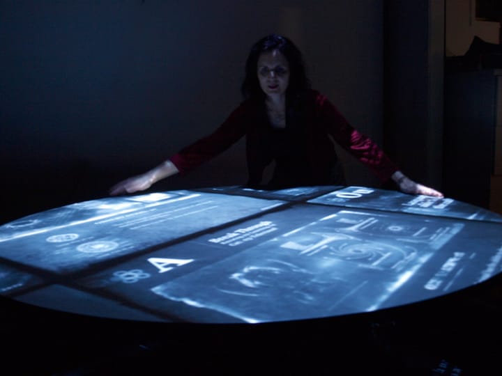 TEAM: Keith Armstrong (Artist director), co-director Chris Barker. Darren Pack (Quest 3D programmer) Luke Lickfold (Interactive Sound Design) and Stuart Lawson (Designer). Quotes by Tony Fry, Table design Fred Howie, Howie Engineering.