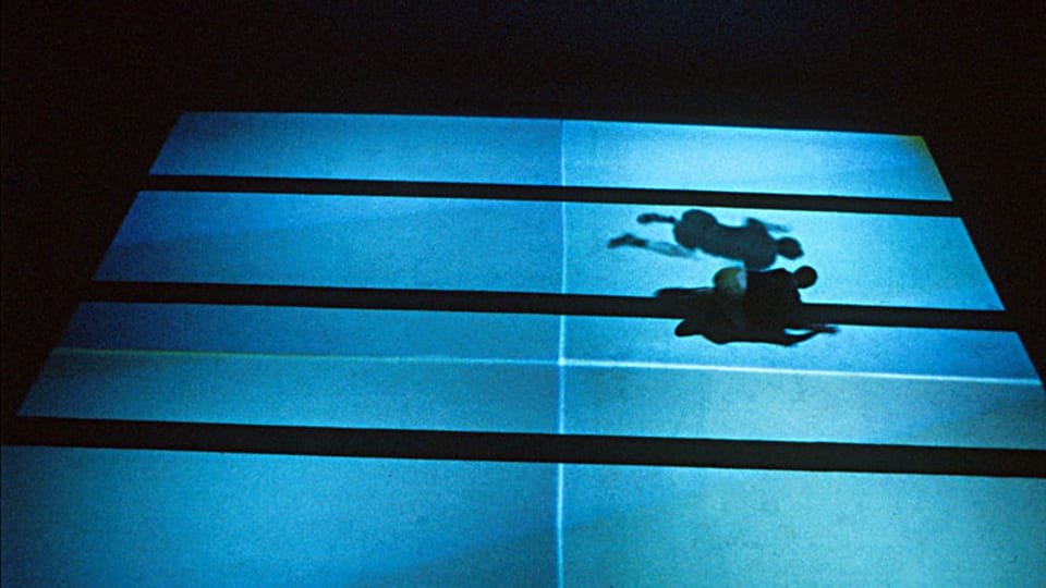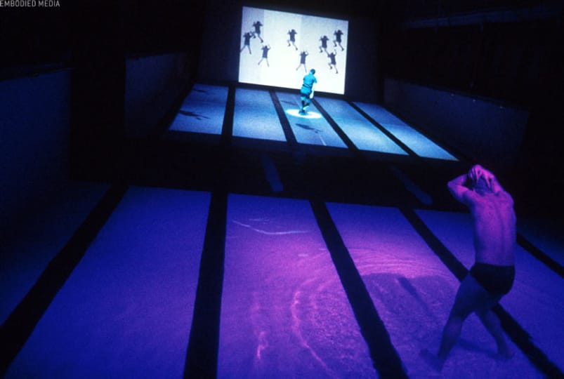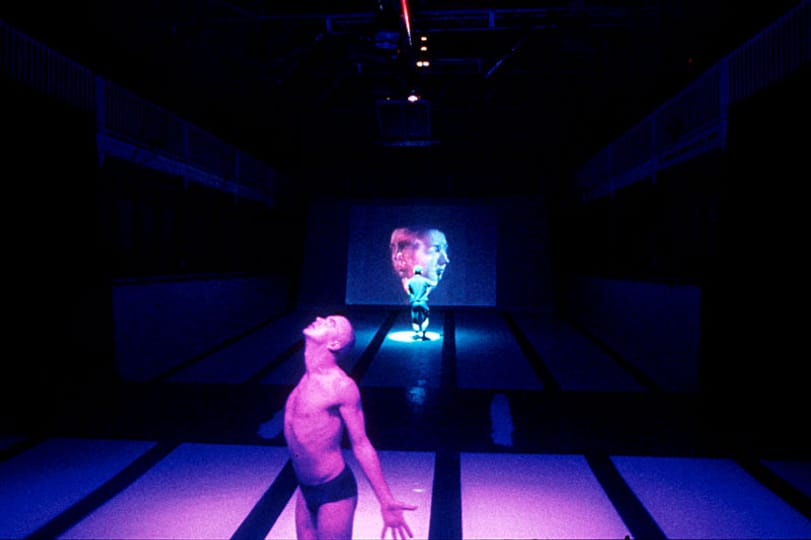 Site-specific performance work, included dance, interactive performance, sound, virtual reality and performers set within pool floor-sized video projections.
